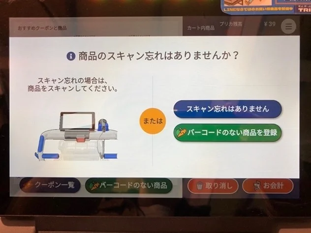 具体的には、最新型ハードウェアにおいては買い物中のスキャン忘れをデバイス上でお客様に通知する機能を実装しています。スキャンされていない商品がカート内に入った際に、お客様にスキャン忘れをお知らせします。