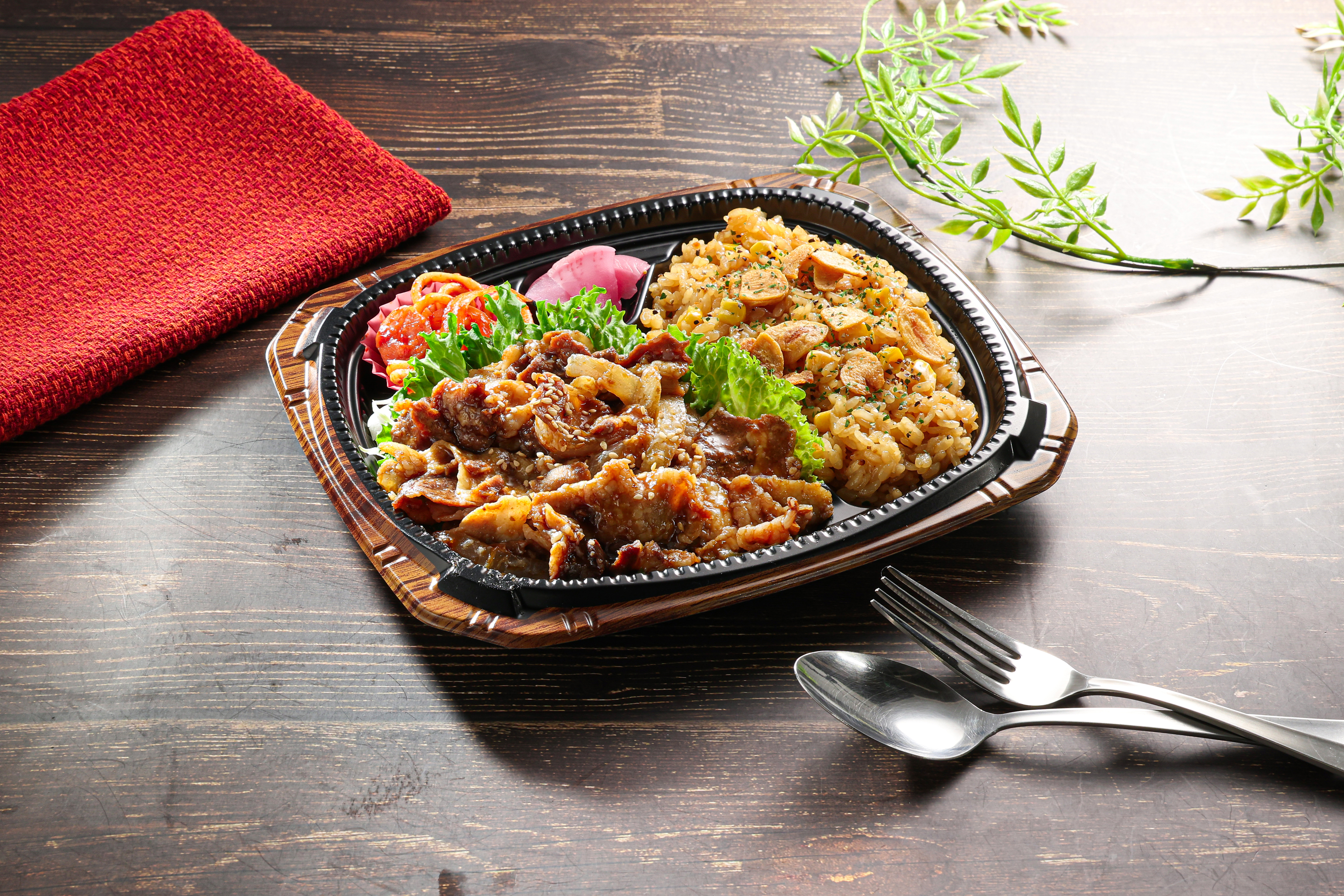 受賞者コメント「開発時期が夏だったので、夏バテをしないようにスタミナをつけるためには、どのような料理をお弁当に入れたらよいかなと考えました。スタミナ=お肉やにんにくと結び付け、食べ応えのある焼肉とガーリックライスの組み合わせにしました。ガツンとした味のお弁当なので、箸休めの意味合いと栄養バランスを考えて副菜に野菜を使っています。」